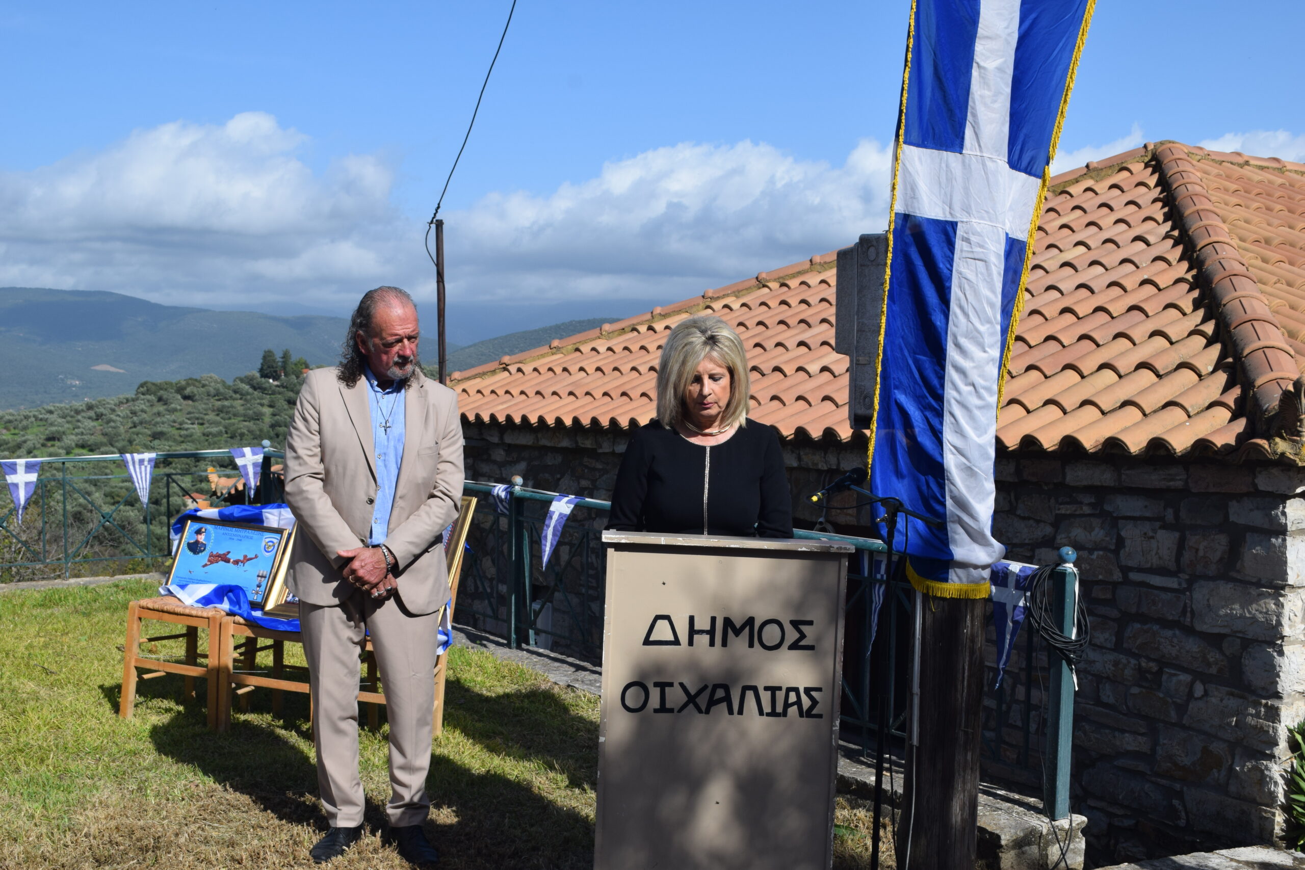 «Χρέος μας είναι να μην ξεχνάμε. Κρατάμε ζωντανή τη μνήμη των ανθρώπων που θυσίασαν τη ζωή τους ώστε να ζούμε σήμερα ελεύθεροι», σημείωσε μεταξύ άλλων η Δήμαρχος Οιχαλίας Γιώτα Γεωργακοπούλου η οποία αναφέρθηκε στον ήρωα του 1940.